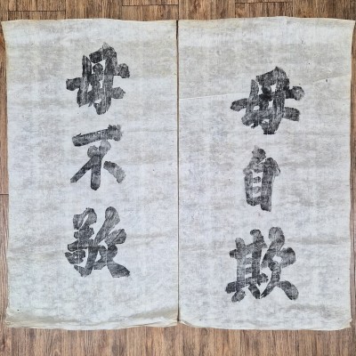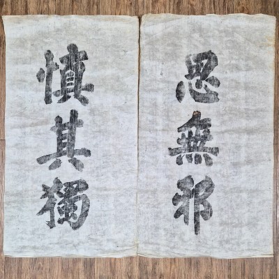 퇴계 이황(李滉) 선생이 항상 벽에 붙여 놓고 실천하고자 했던 경구이다. 퇴계 이황은 조선 중기의 대표적인 성리학자로, 성균관 대사성, 대제학, 지경연 등을 역임하였고 주자학을 깊이 연구하였다. 영남학파의 중심인물로 후대 남인학파의 사상적 기반이 되었으며, 『성학십도』등을 저술하여 조선 유학 발전에 큰 영향을 끼쳤다. 상태 양호. '생각에 삿됨이 없어야'.' 그 홀로 있을 때 삼가 조심하여야 되느니' 등의 내용.