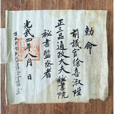 대한제국 비서원 비서감승(大韓帝國 秘書院 秘書監丞) 임명 교지